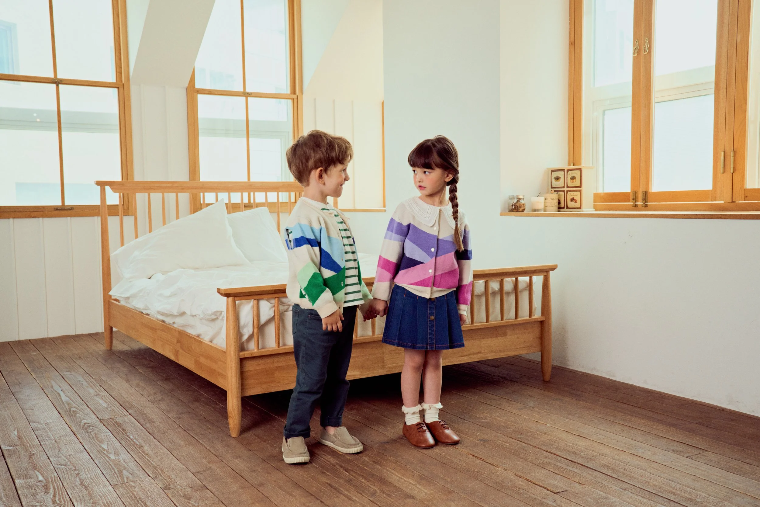 Our brand embodies a harmonious fusion of Scandinavian design principles with a modern twist, blending minimalism and functionality with a vibrant touch of playfulness. Rooted in simplicity, practicality, and natural beauty, our creations feature clean lines, whimsical elements, and imaginative patterns that spark joy and creativity, while each piece is meticulously designed to serve a practical purpose, ensuring a perfect balance of form and function. This combination results in a unique, timeless aesthetic that celebrates both simplicity and the playful spirit of childhood.